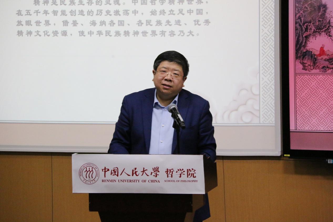 臧峰宇教授在主持讲座时指出,通过对精神的追问、精神世界的形成、哲学精神世界、中西精神世界差分四个方面的深入阐释,著名哲学家张立文先生深刻揭示了中华民族精神的内在结构。从中可见,中国哲学具有极高明的哲学理论思维,尽精湛的宏伟精神世界。中国哲学精神世界是在五千年历史实在中创造的诸形相、无形相逻辑地联通、凝聚而成的和合体。希望同学们深刻理解张老师讲座中的思想要义,认真思考马克思主义哲学同中国具体实际和中华优秀传统文化相结合的内在机理,自觉弘扬跨越时空、富有永恒魅力和当代价值的中华优秀传统文化,探究符合时代精神的古为今用和推陈出新。
